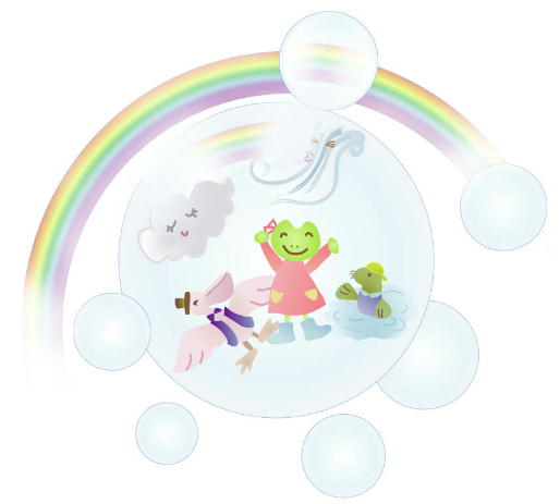 シャボン玉の中に ケロちゃんがいますよ。